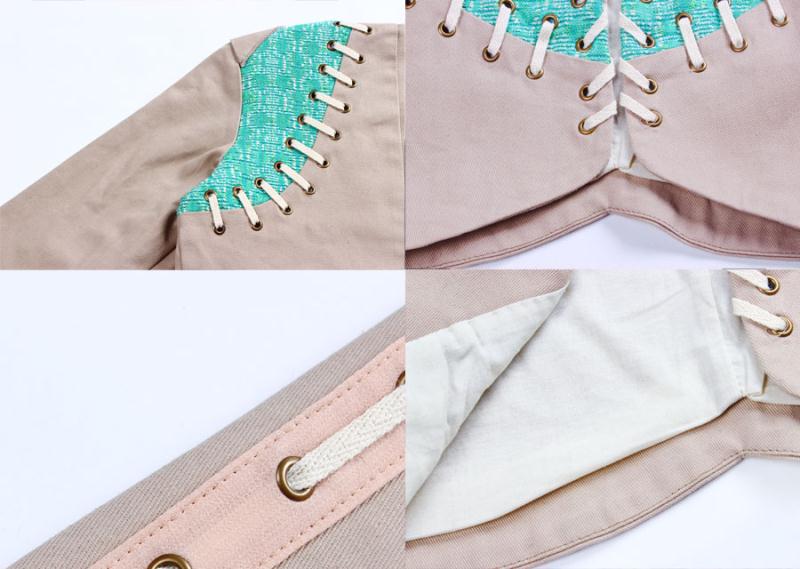 Brief Description:cotton twill fabric ,metal eyelet elements and cross linking by cotton woven tape( color tape used will create good appearance)